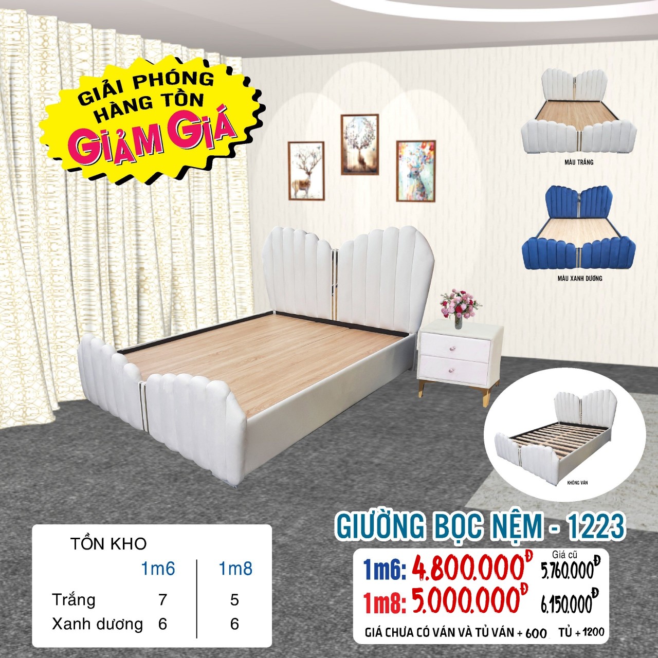 Giường Bọc Nệm 1218&1219&1223 là một sản phẩm độc đáo và đẹp mắt, được thiết kế theo phong cách hoàng gia.