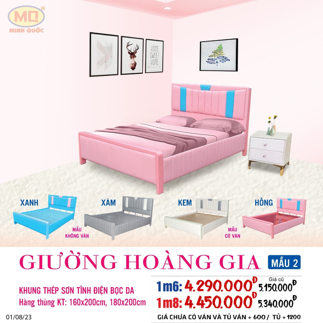 Giường Hoàng Gia là sản phẩm với thiết kế tinh tế, sang trọng, cứng cáp mang đến sự thoải mái cho người sử dụng.