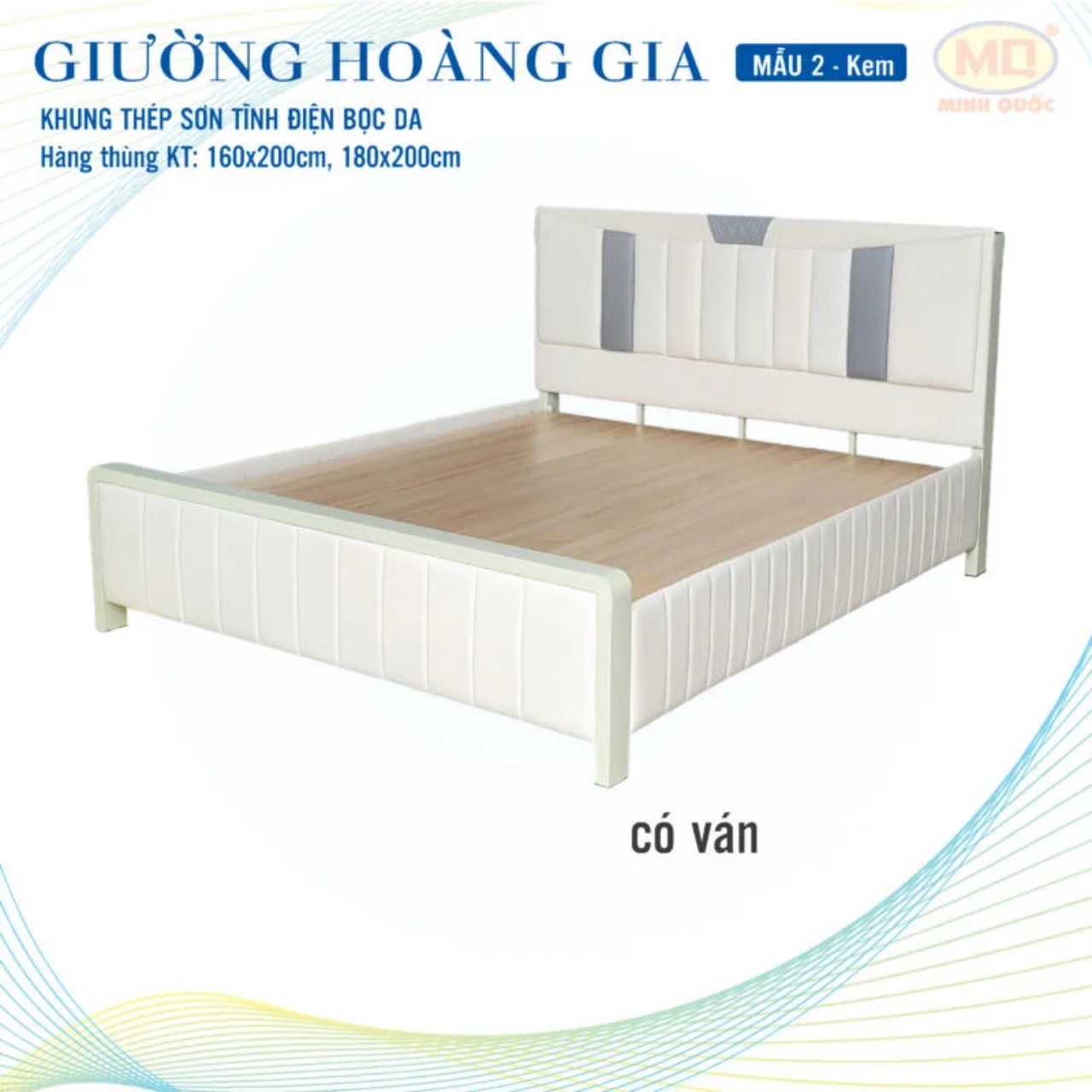 Hơn nữa, giường hoàng gia còn có tùy chọn có ván hoặc không có ván. Với ván giường, bạn có thể tận hưởng sự thoải mái và ổn định tối đa.