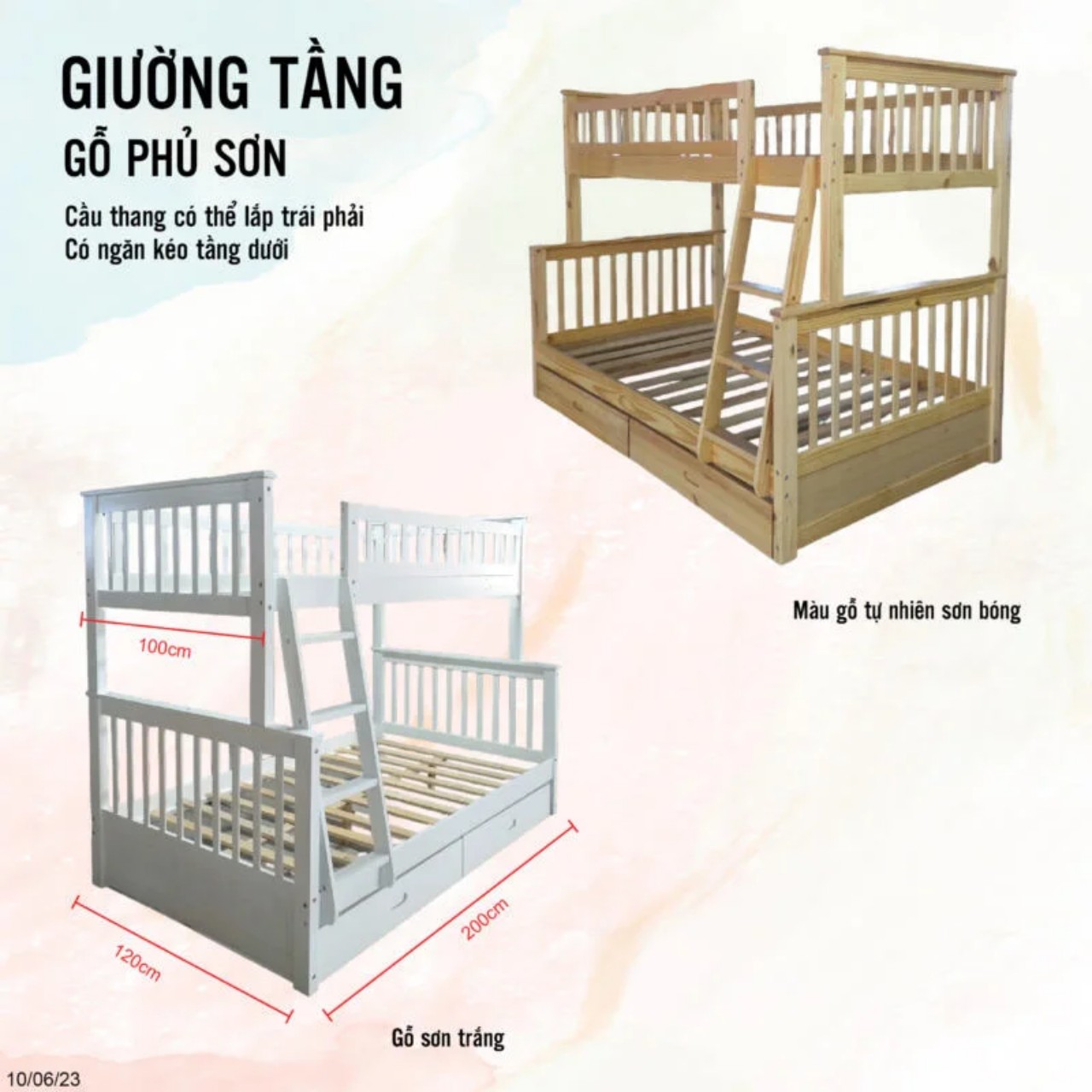 Giường Tầng Gỗ Thông là một sản phẩm nội thất đáng để bạn sở hữu. Với giá cả hợp lý, chất lượng cao, thiết kế đẹp và tiện dụng, Giường Tầng Gỗ Thông sẽ mang lại cho bạn một không gian ngủ thoải mái, ấm áp và sang trọng. Hãy liên hệ với chúng tôi ngay hôm nay để đặt hàng và nhận được những ưu đãi hấp dẫn. Chúng tôi cam kết giao hàng nhanh chóng, lắp đặt miễn phí và bảo hành dài hạn cho sản phẩm của bạn. Cảm ơn bạn đã quan tâm đến Giường Tầng Gỗ Thông. Chúc bạn một ngày tốt lành!