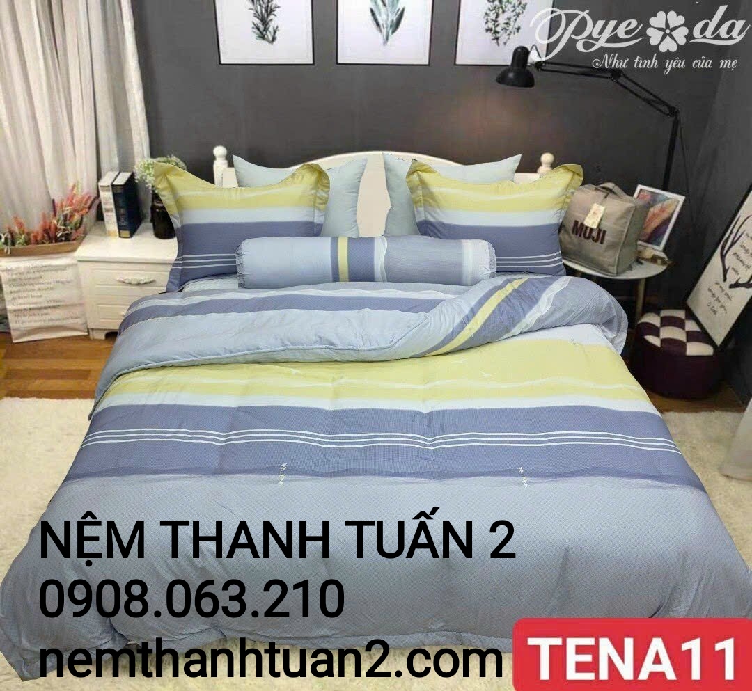 - Kích thước: Ga nệm lụa cotton Pyeoda Tena có nhiều kích thước khác nhau, phù hợp với các loại nệm thông dụng trên thị trường. Bạn có thể chọn kích thước ga nệm theo kích thước nệm của bạn, ví dụ: 120x200cm, 160x200cm, 180x200cm, 200x220cm...