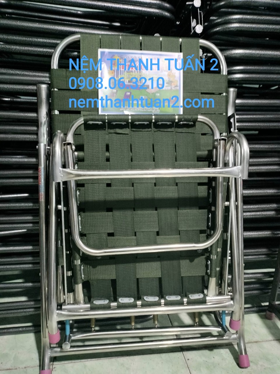 Khung ghế bằng inox 100% không rỉ sét, ống inox siêu dày và cứng chắc, không lo bị gãy, luôn sáng bóng qua nhiều năm sử dụng. Mặt giường được làm bằng lưới cao cấp nhập từ Hà Quốc bền đẹp, thoáng mát, không thấm nước, dễ dàng giặt sạch mà không bị phai màu.