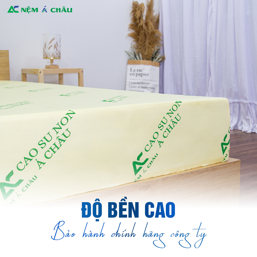 Tuổi thọ Nệm Cao Su Non Á Châu lên đến 15 năm. Nệm sẽ được bảo hành 1 đổi 1 trong vòng 15 năm trường hợp xẹp lún, lỗi do nhà sản xuất.